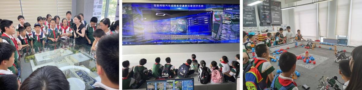 2025年9月19日,同济大学附属新江湾城实验学校(同济附校)六年级240余名学生走进同济大学嘉定校区,开展科技主题研学活动。本次活动由电子与信息工程学院、汽车学院、交通学院联合承办,电信学院实验中心担任协调单位,精心设计分组方案与研学路线,为中学生开启沉浸式科技探索之旅。