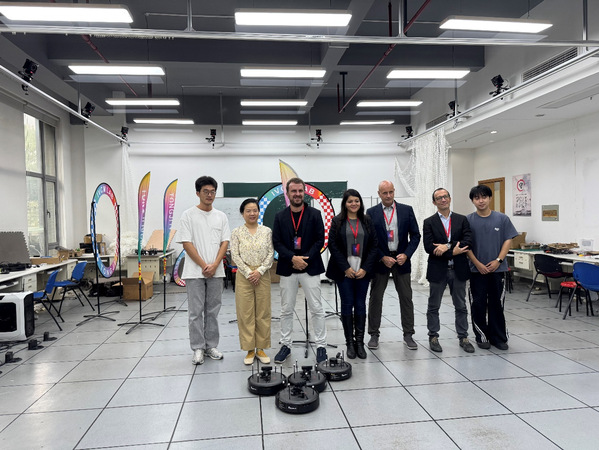 近日,意大利都灵理工大学、罗马第三大学及德国慕尼黑工业大学代表团先后访问我院开展学术交流。10月18日至27日,外方教授在张皓副院长的陪同下,实地走访了位于智信馆123室的自主智能机器人实验室。